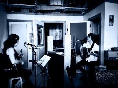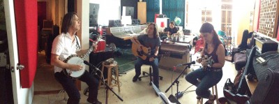 Booked a session at Cowboy Technical Studios yesterday and recorded two new songs for my next record featuring the incredible pickings of Elena Skye and Boo Reiners on mandolin and banjo. Producerman Roscoe took this picture using the panorama app on his iPhone 5 (in case you wonder why the neck of the guitar I'm holding looks wonky.)